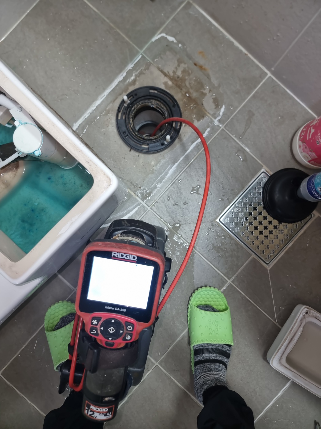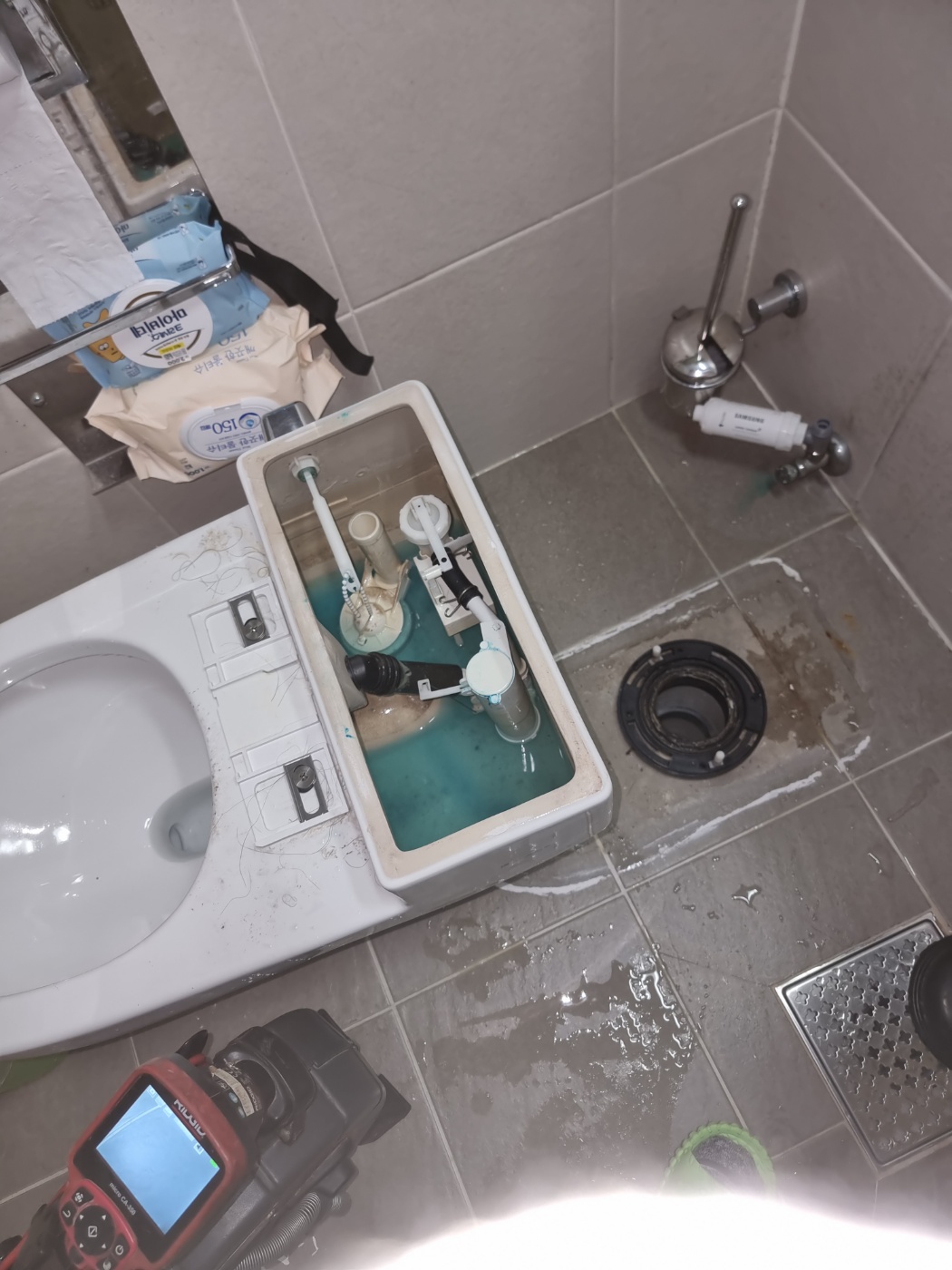 변기를 탈거 한 뒤 오수관에 내시경을 투입하여