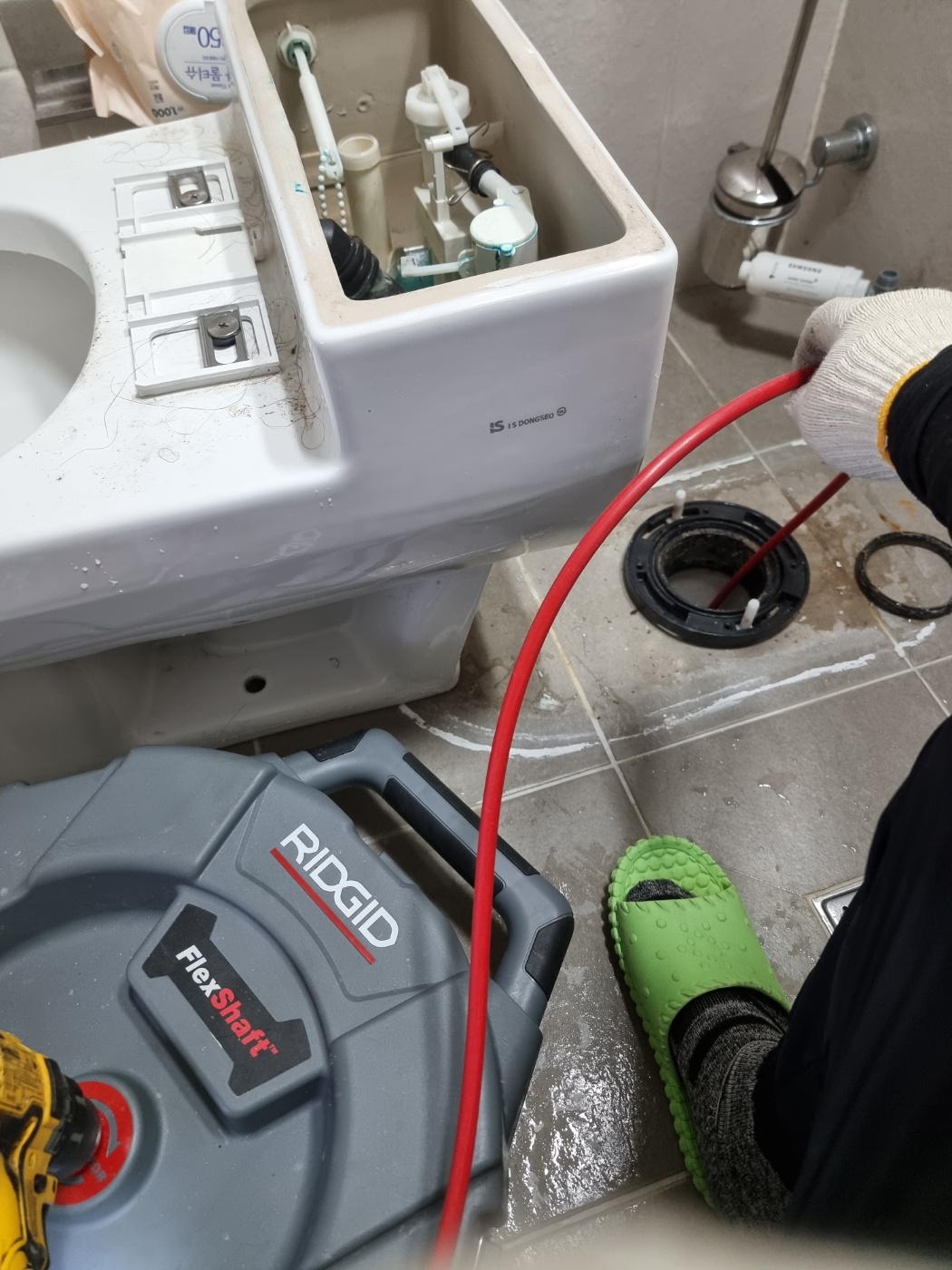깨끗해진 배관 내부를 확인한 후 변기를 재 설치 해주고