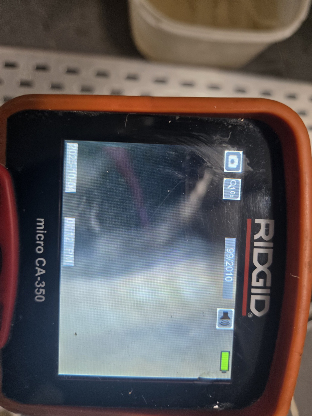 막혀 있는 트렌치 하수 배관에 내시경을 투입하여
