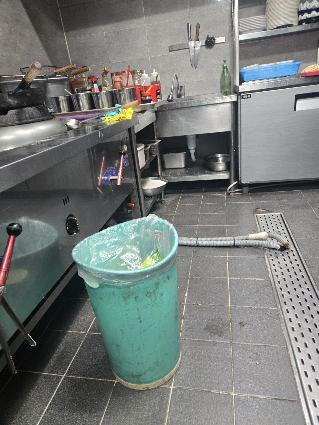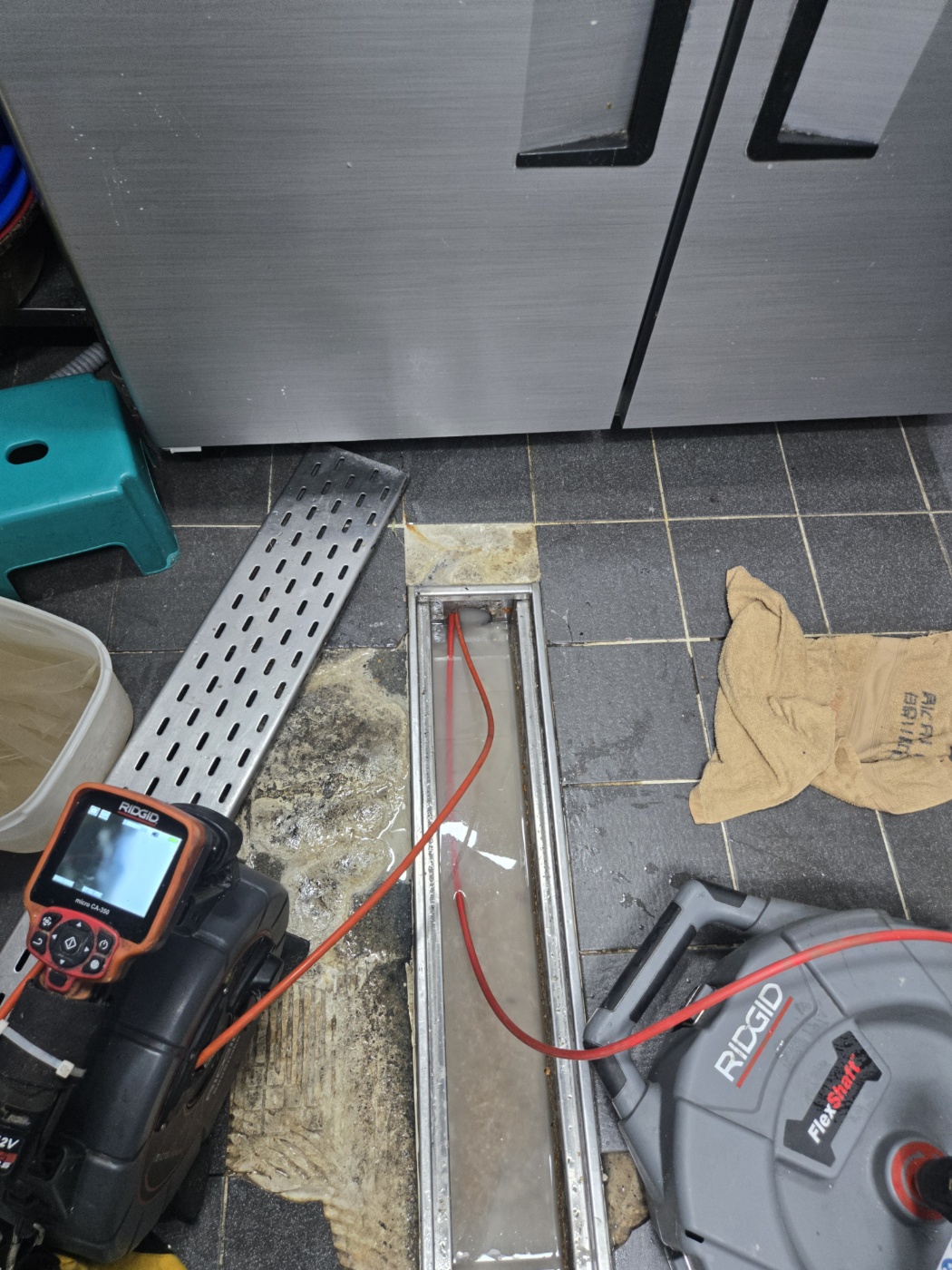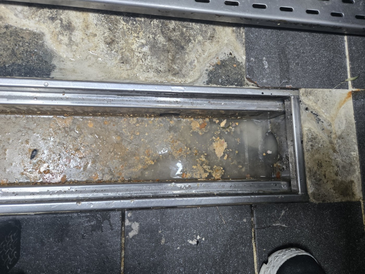 음식점 주방 트렌치 배수구 배관에 배수가 원활하지 않아 점검을 의뢰하고자