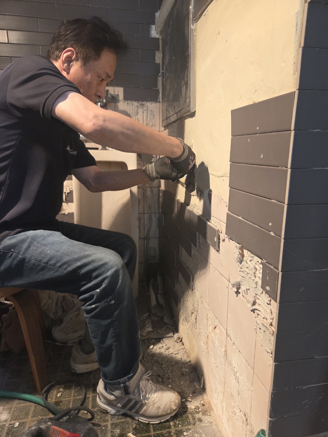 누수 포인트를 찾아 벽면을 굴착 한 뒤