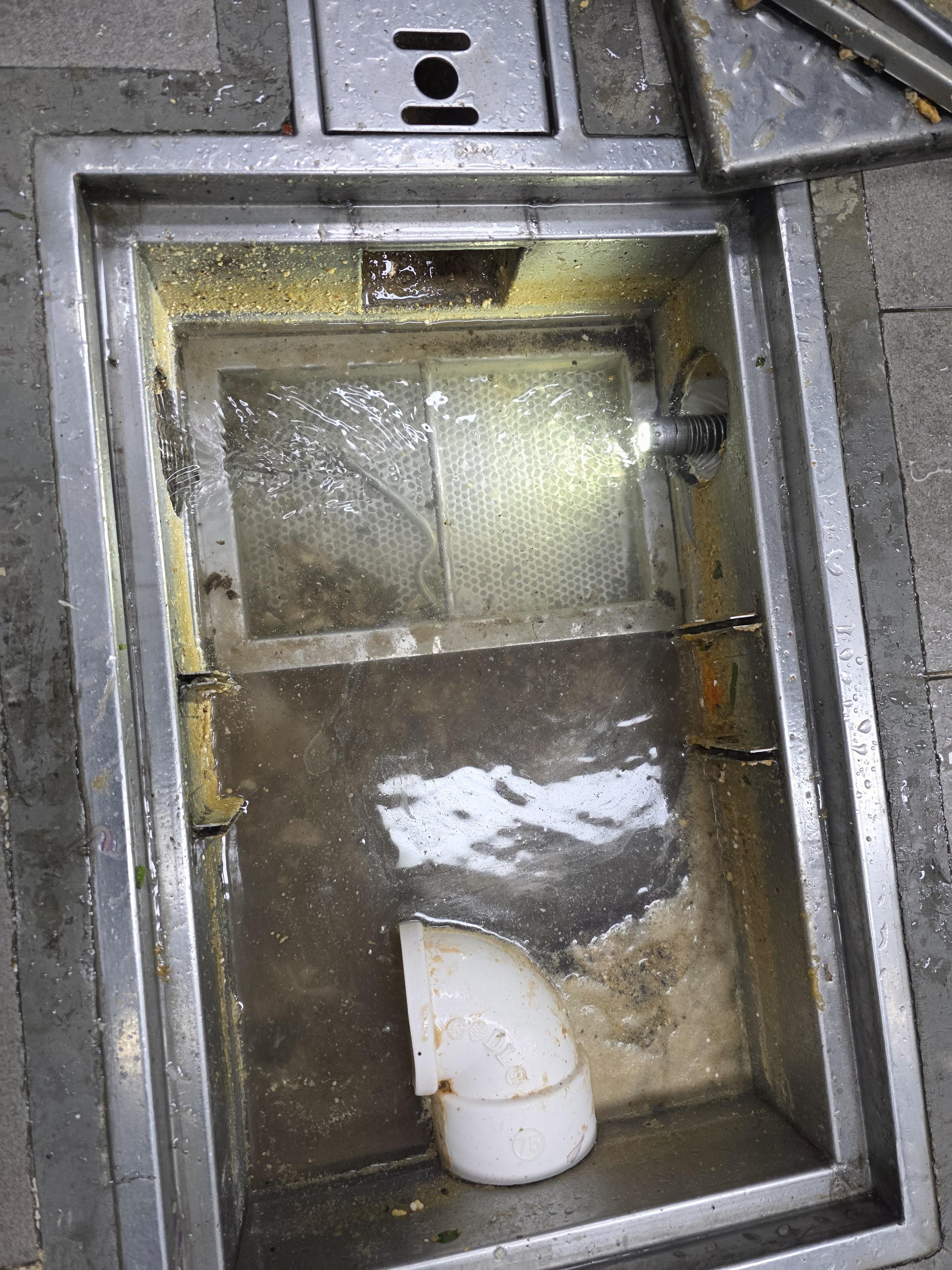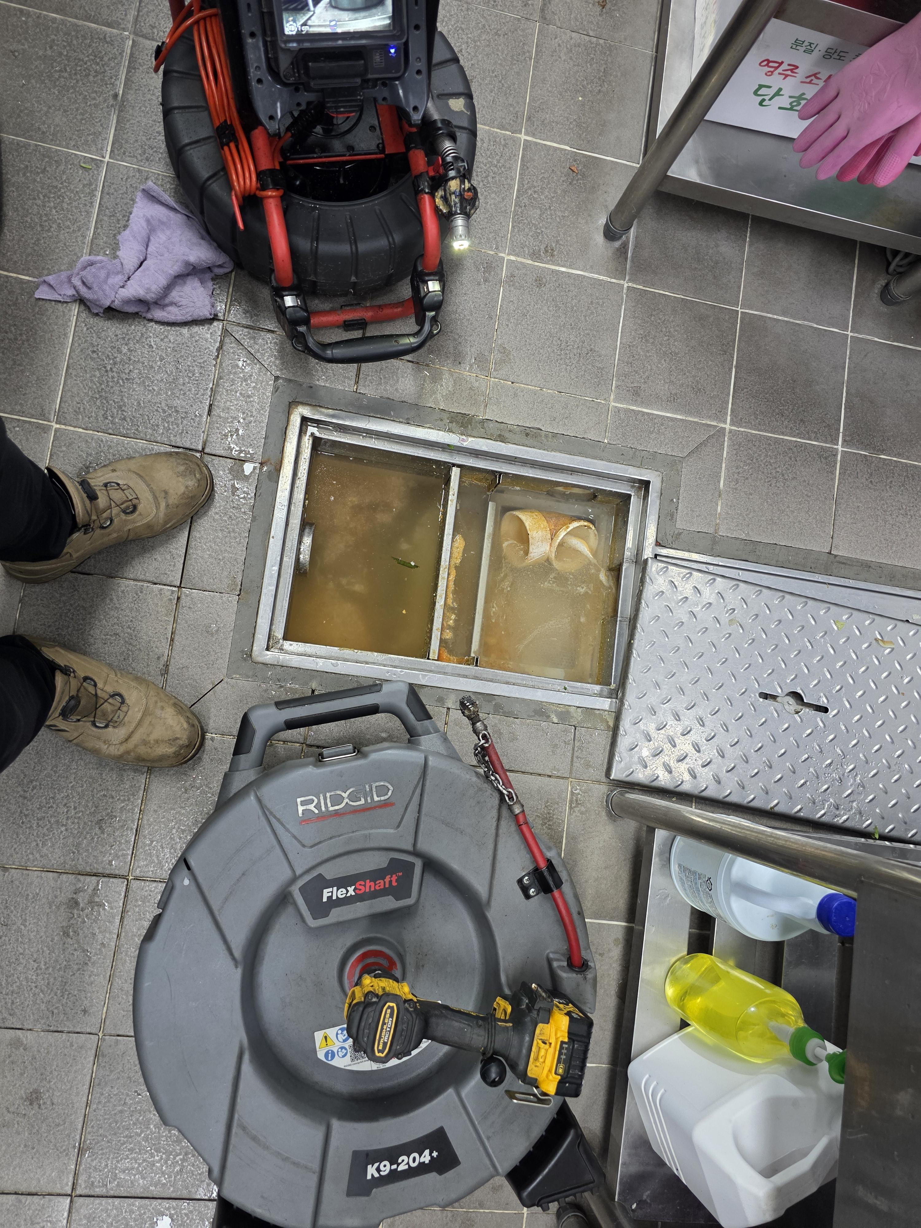 음식점 주방 트렌치 배수구 배관에 배수가 원활하지 않아 점검을 의뢰하고자