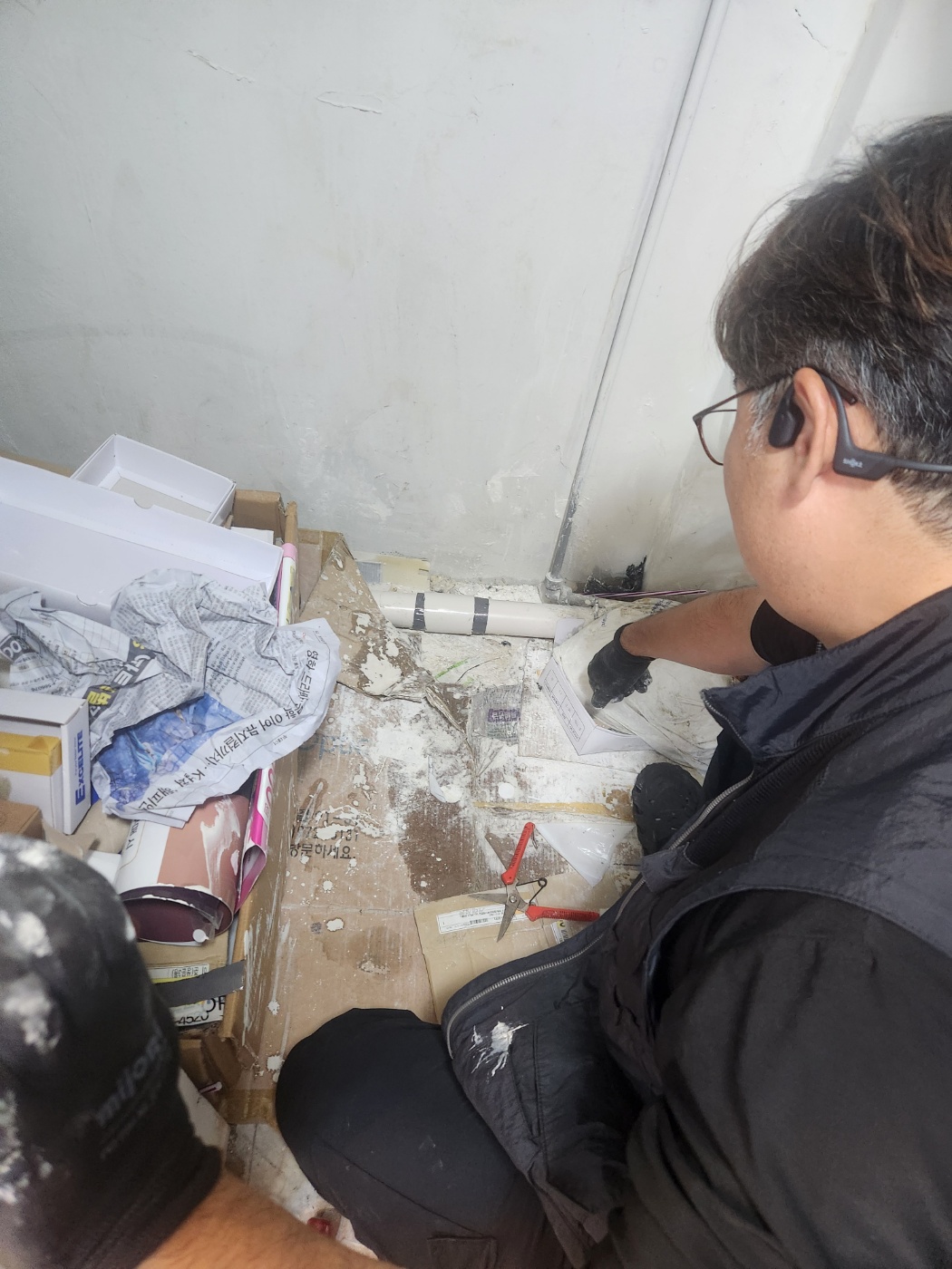 타공 배관 마감 처리를 해주고 작업을 마쳤습니다.