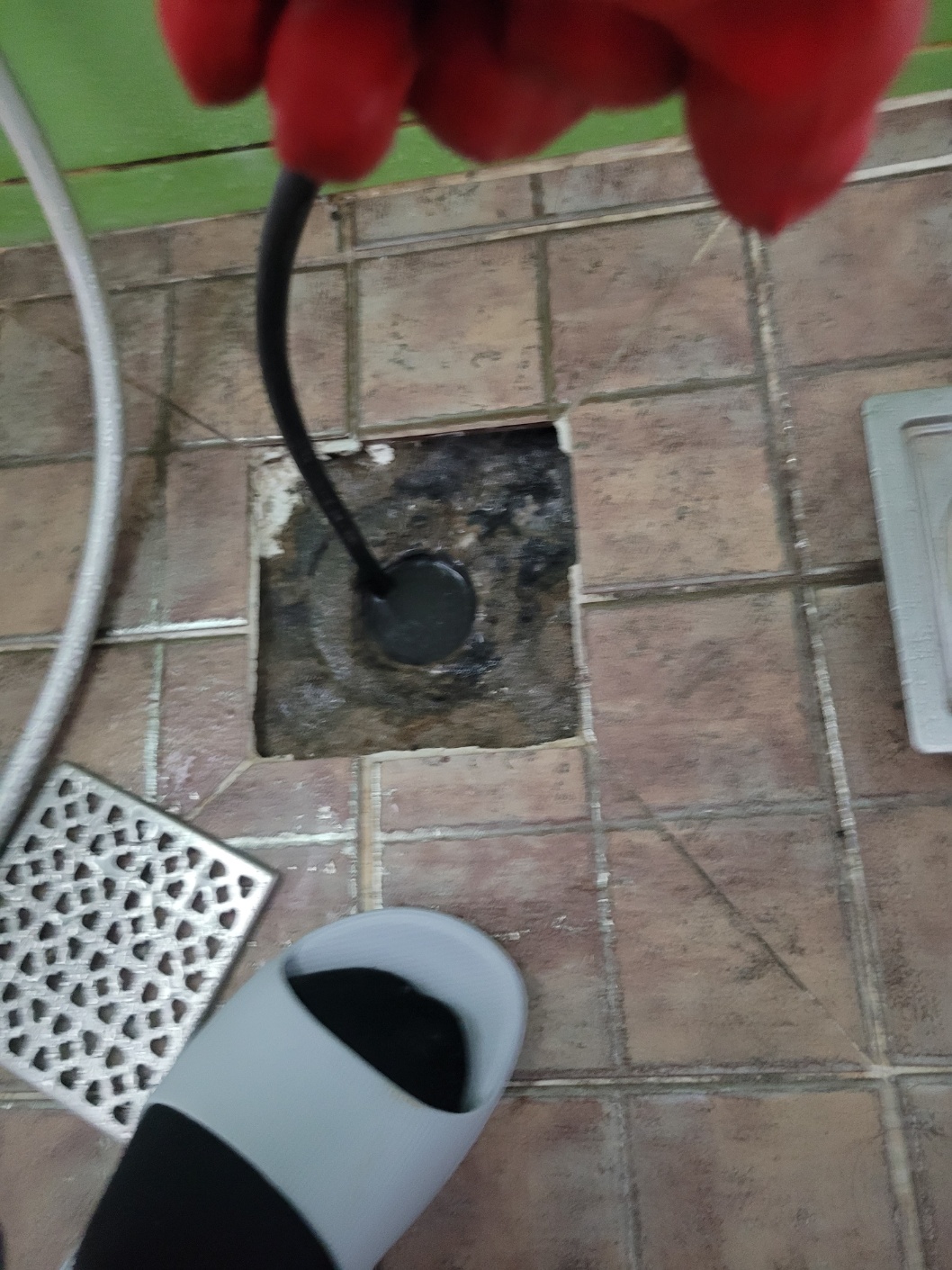 세면대 바닥 배관에 내시경 점검 후 스케일링과 석션 장비를 사용하여