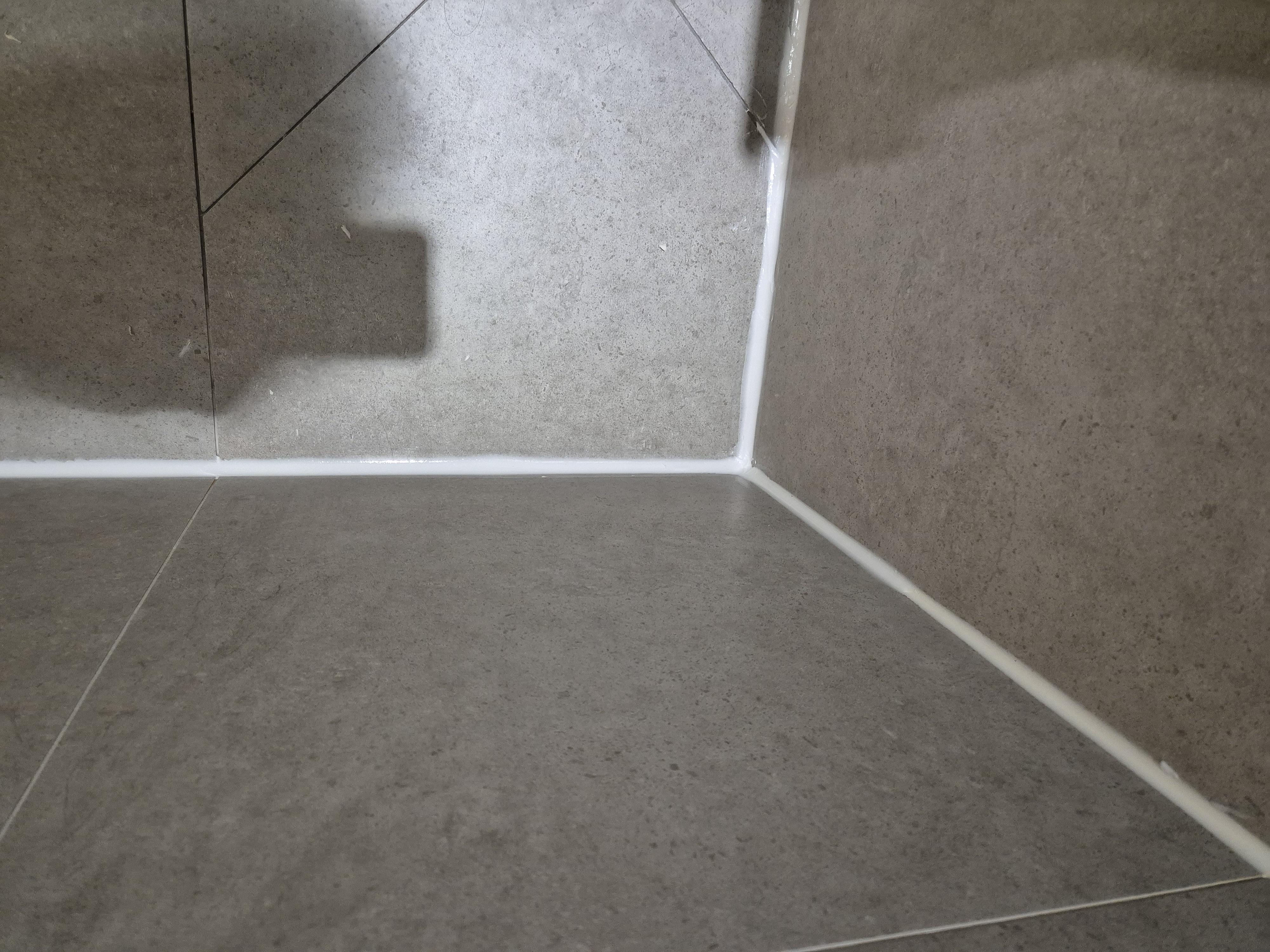 화장실 벽면에도 실리콘으로 보수 작업을 진행해