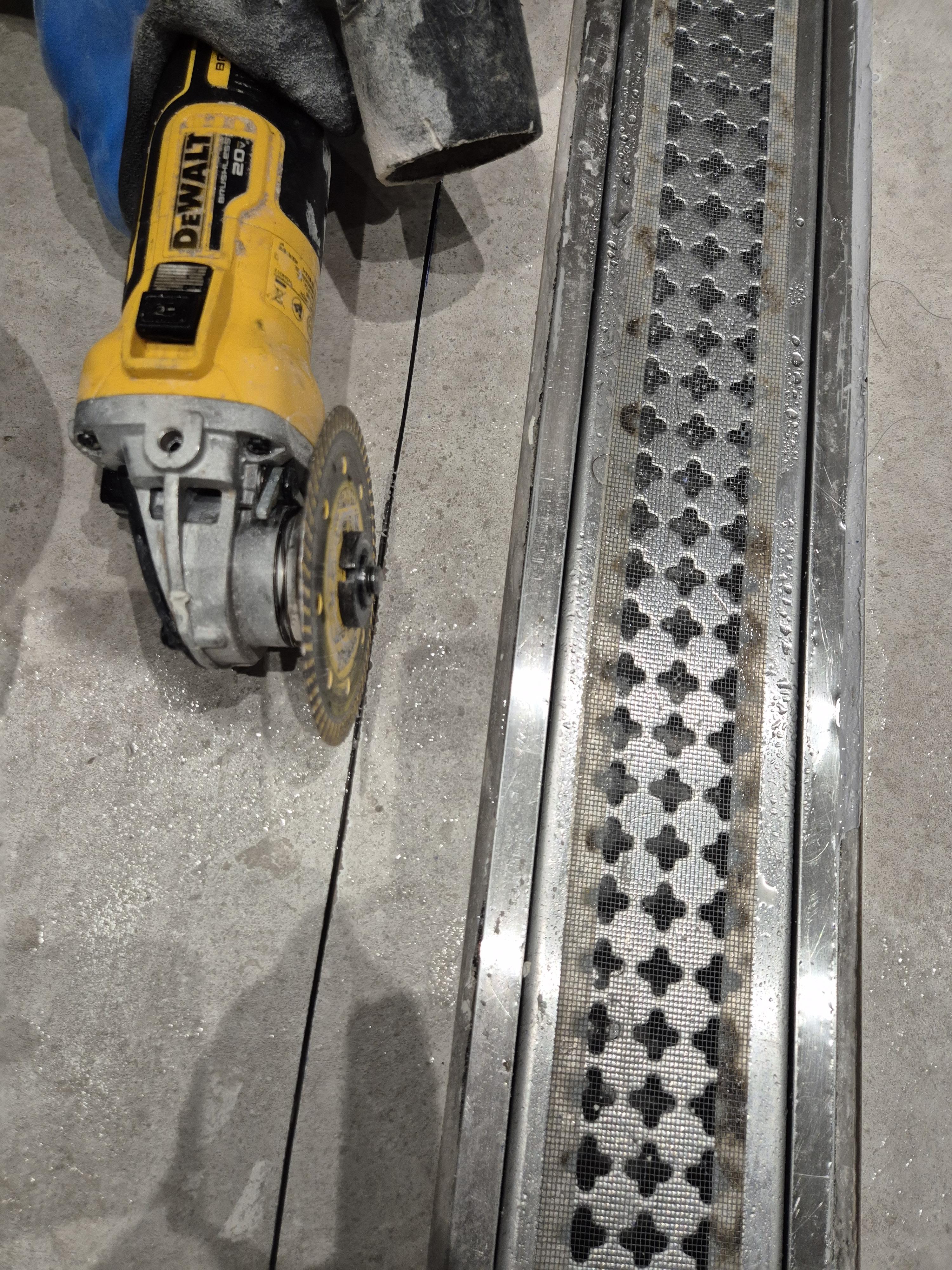 트렌치 배수구 주변을 굴착하여 시멘트로
