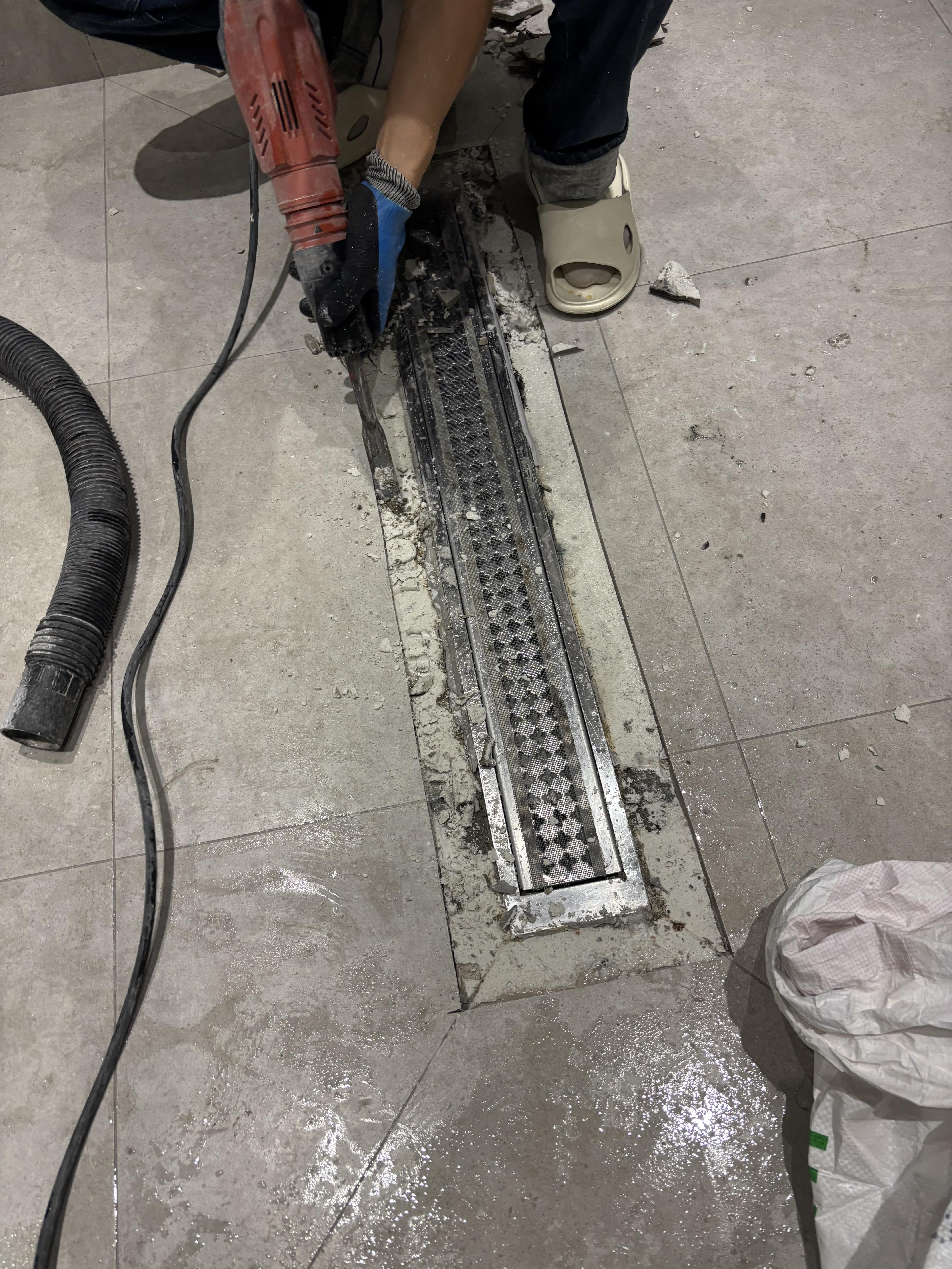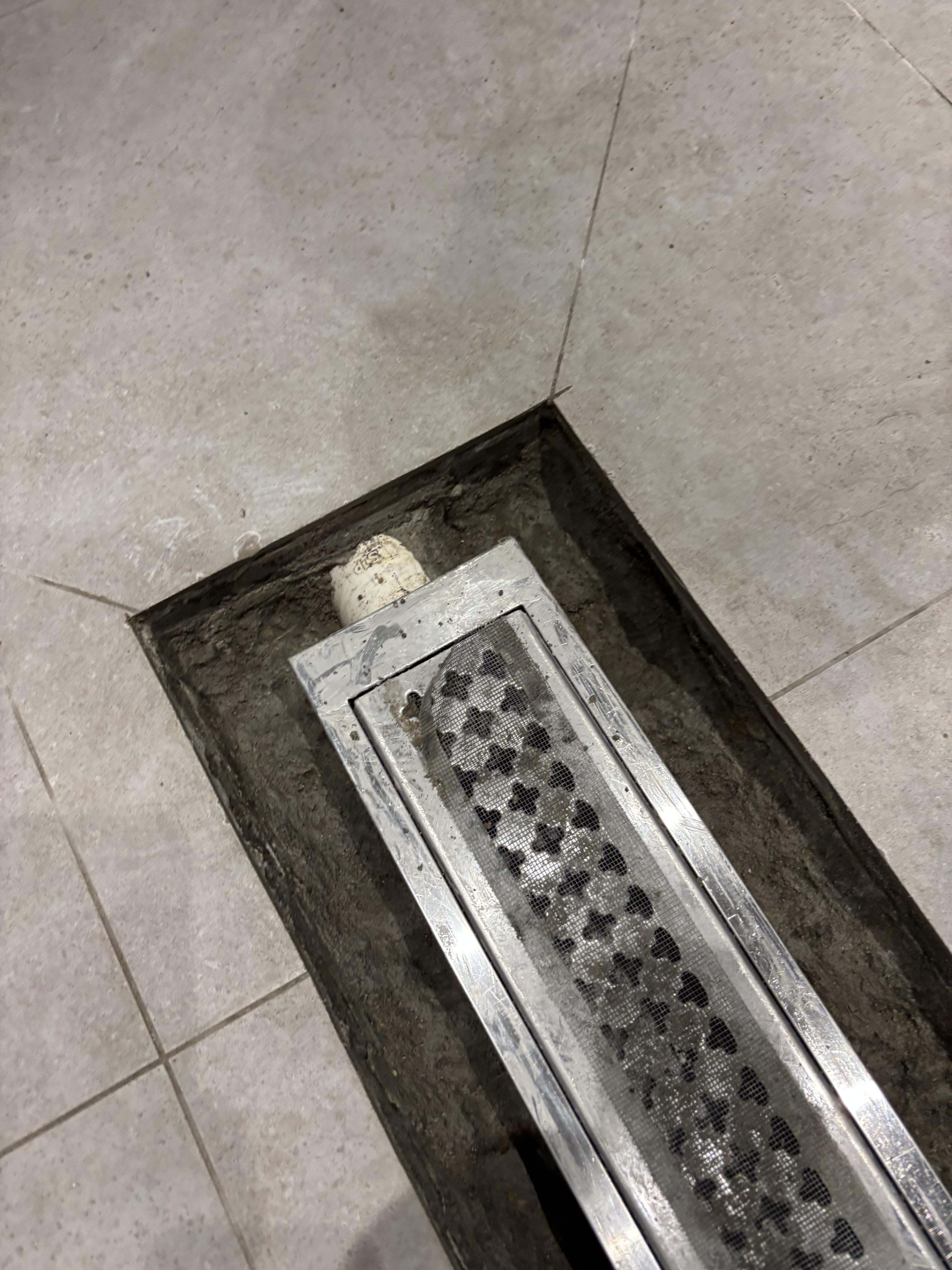 누수 확인 결과 화장실 트렌치 배수구 방수 불량으로 인해