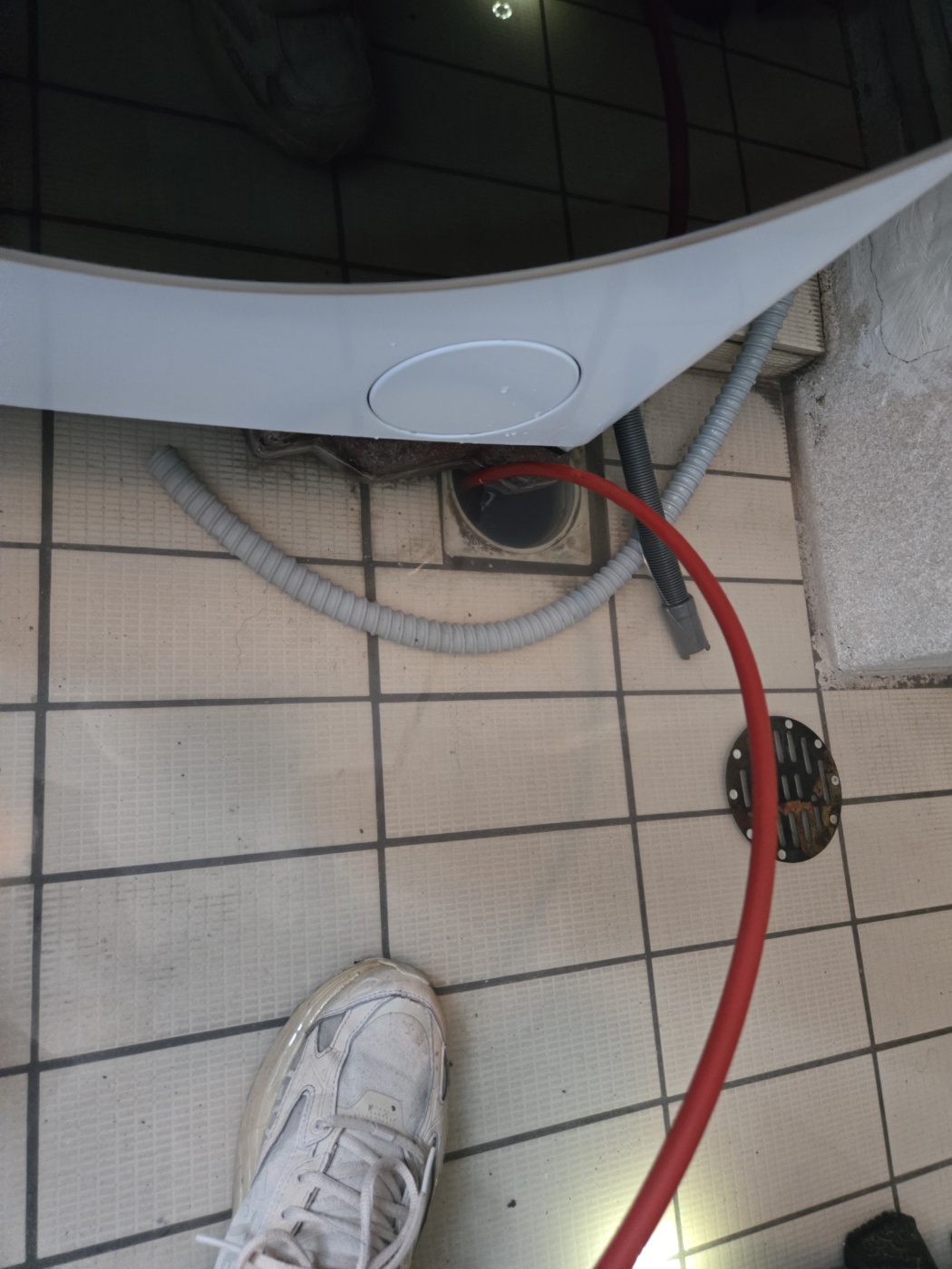 세탁기 하수구가 막혀 물이 고이고 역류하는 문제가 생기자
