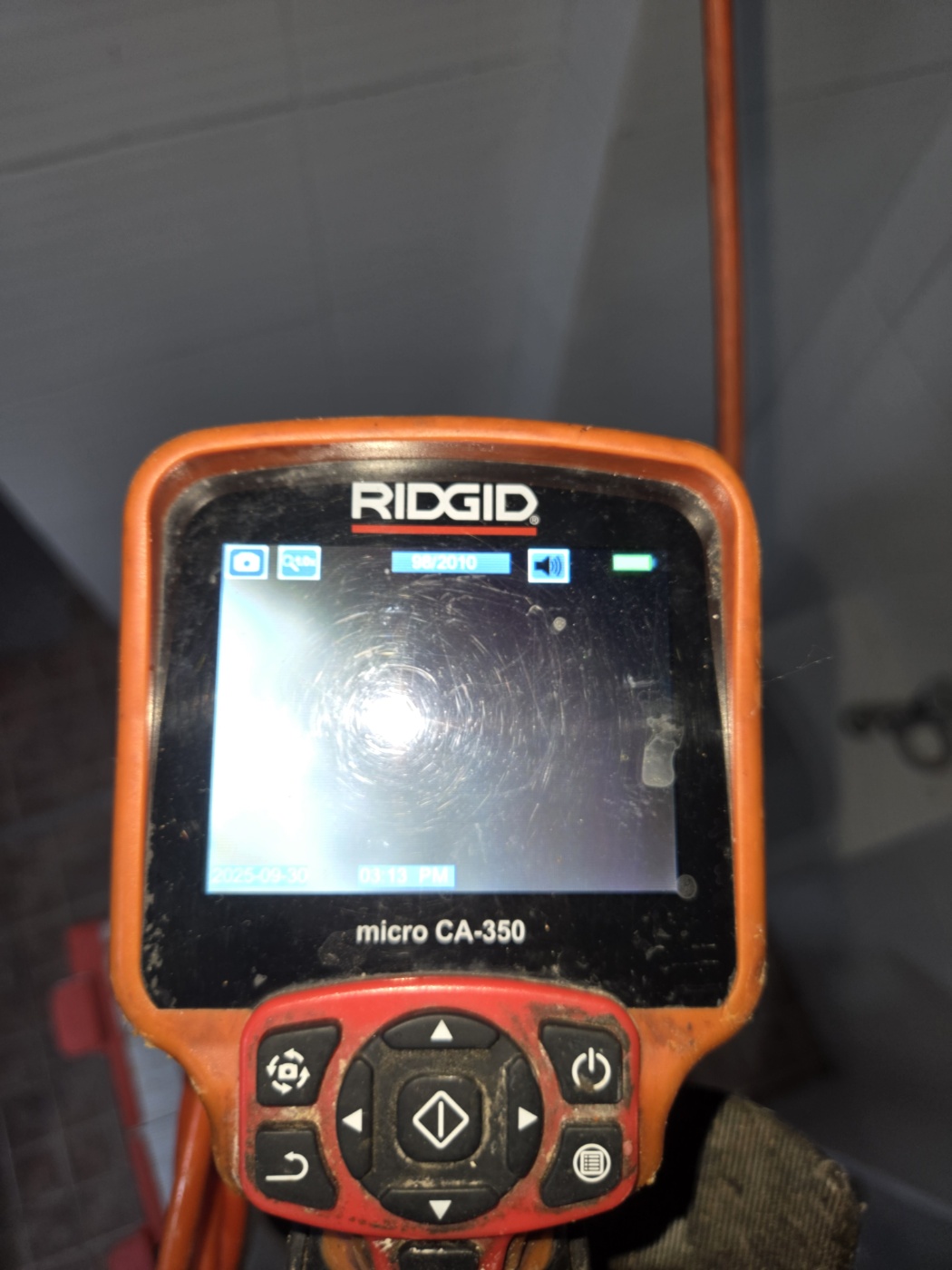 소변기 막힘의 원인을 확인하기 위해 내시경을 투입하여