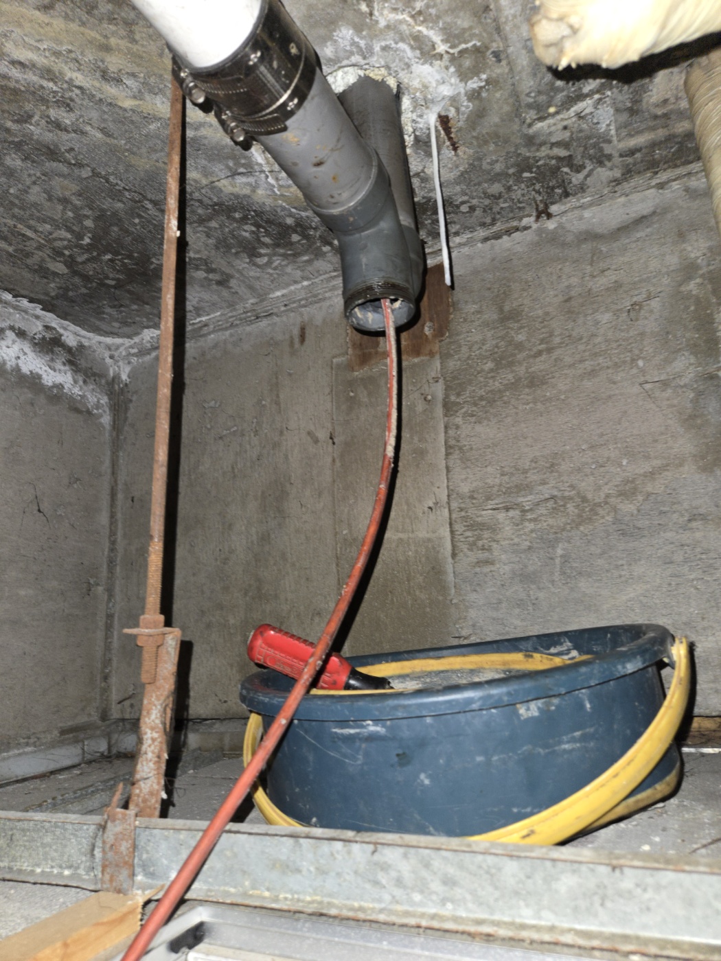 천장 오수 p트랩 배관에도 스케일링 작업을 진행하여