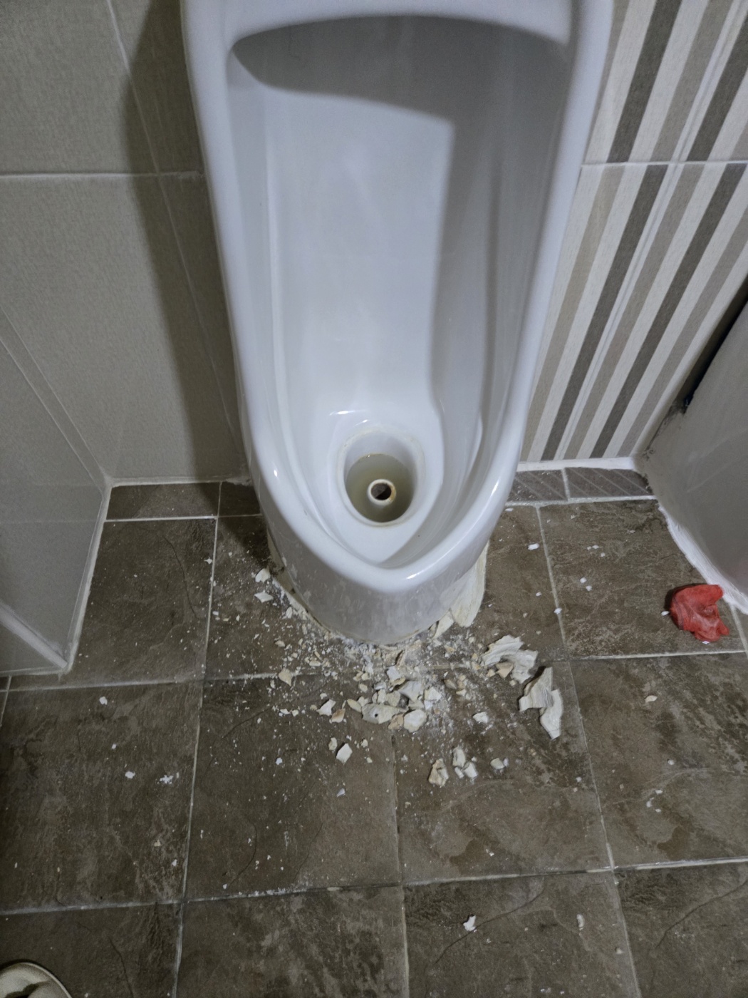 요석 막힘을 확인하고 소변기를 탈거 한 뒤