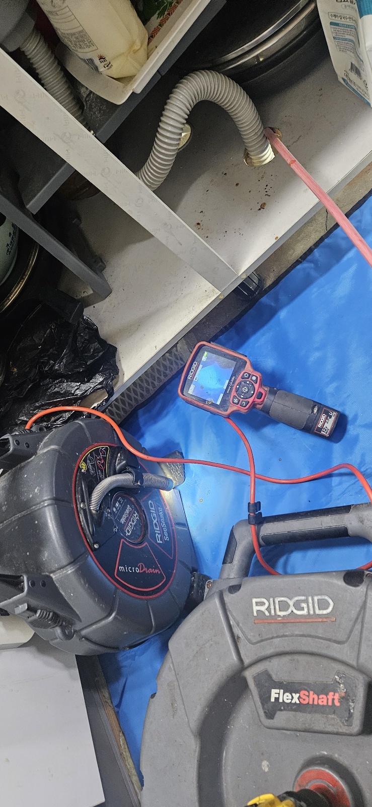 막힌 배관을 뚫고 세척 작업을 진행해 드리기로 하였습니다.