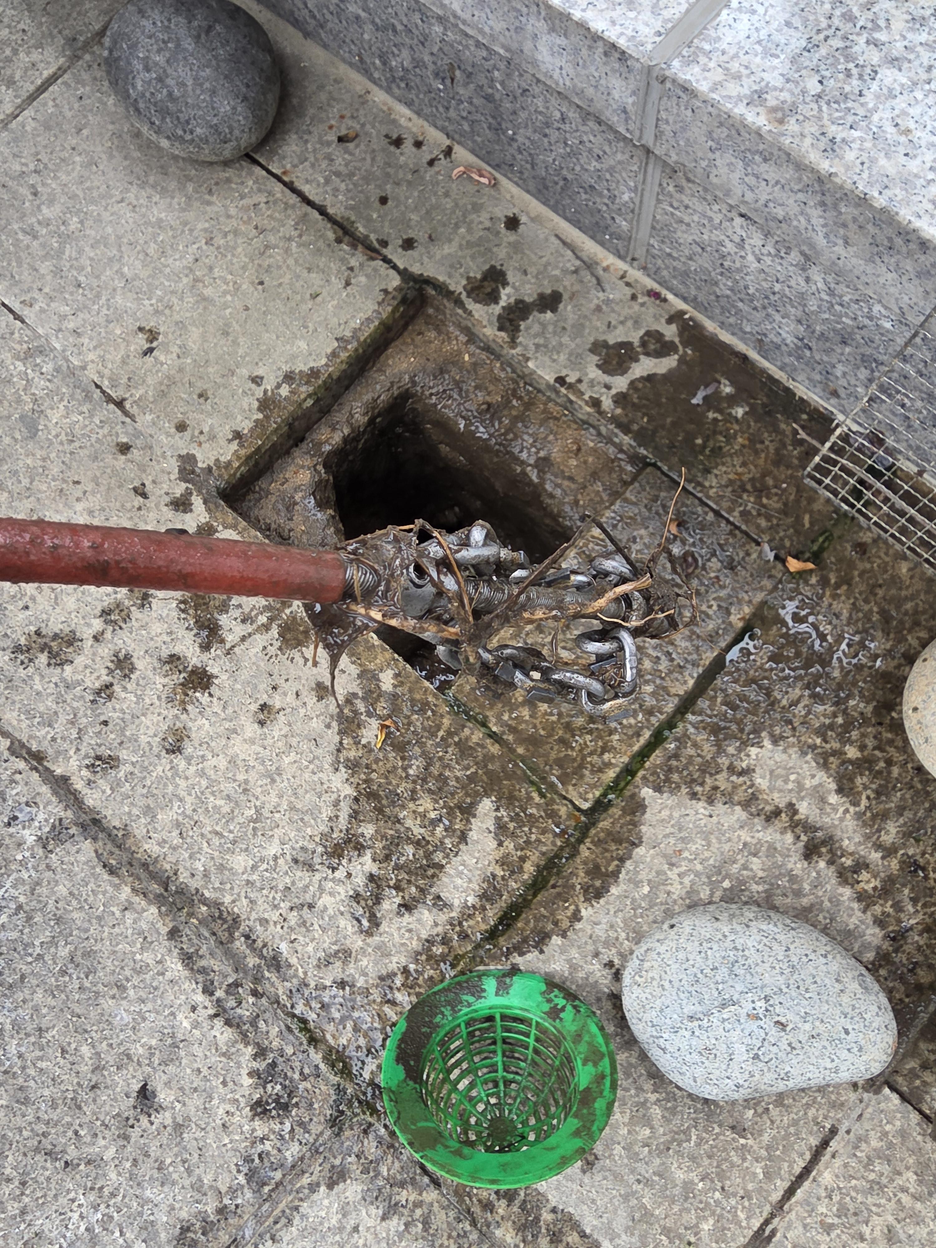 막힌 우수관을 뚫어 통수를 시켜 준 뒤