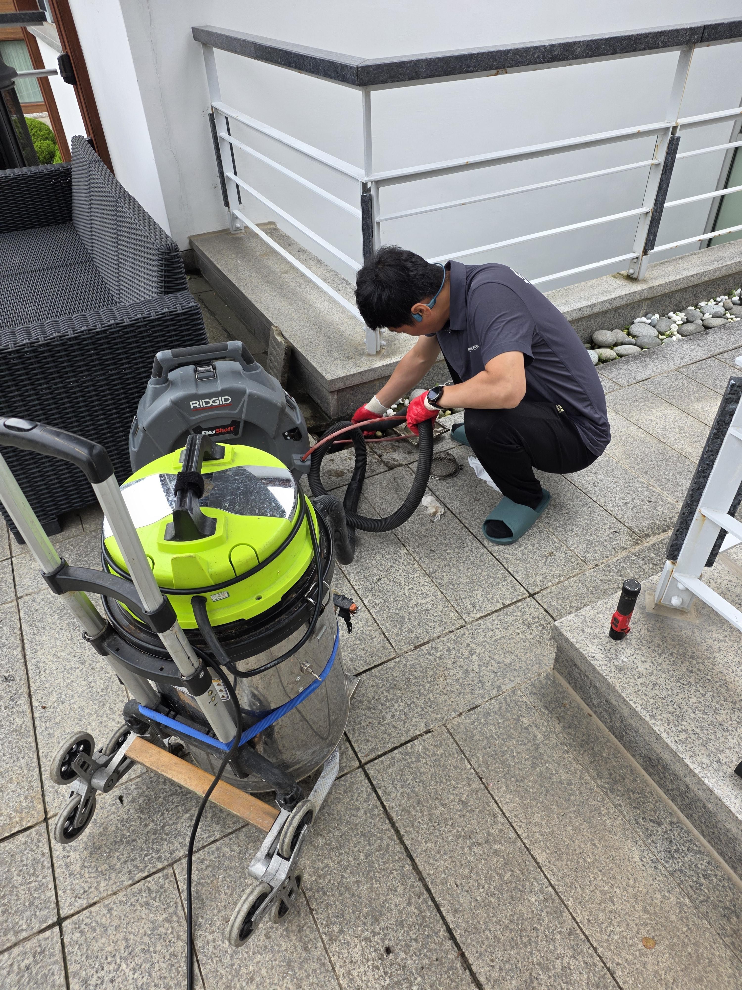 스케일링과 석션 장비를 사용하여 배관 속 오물을 제거해