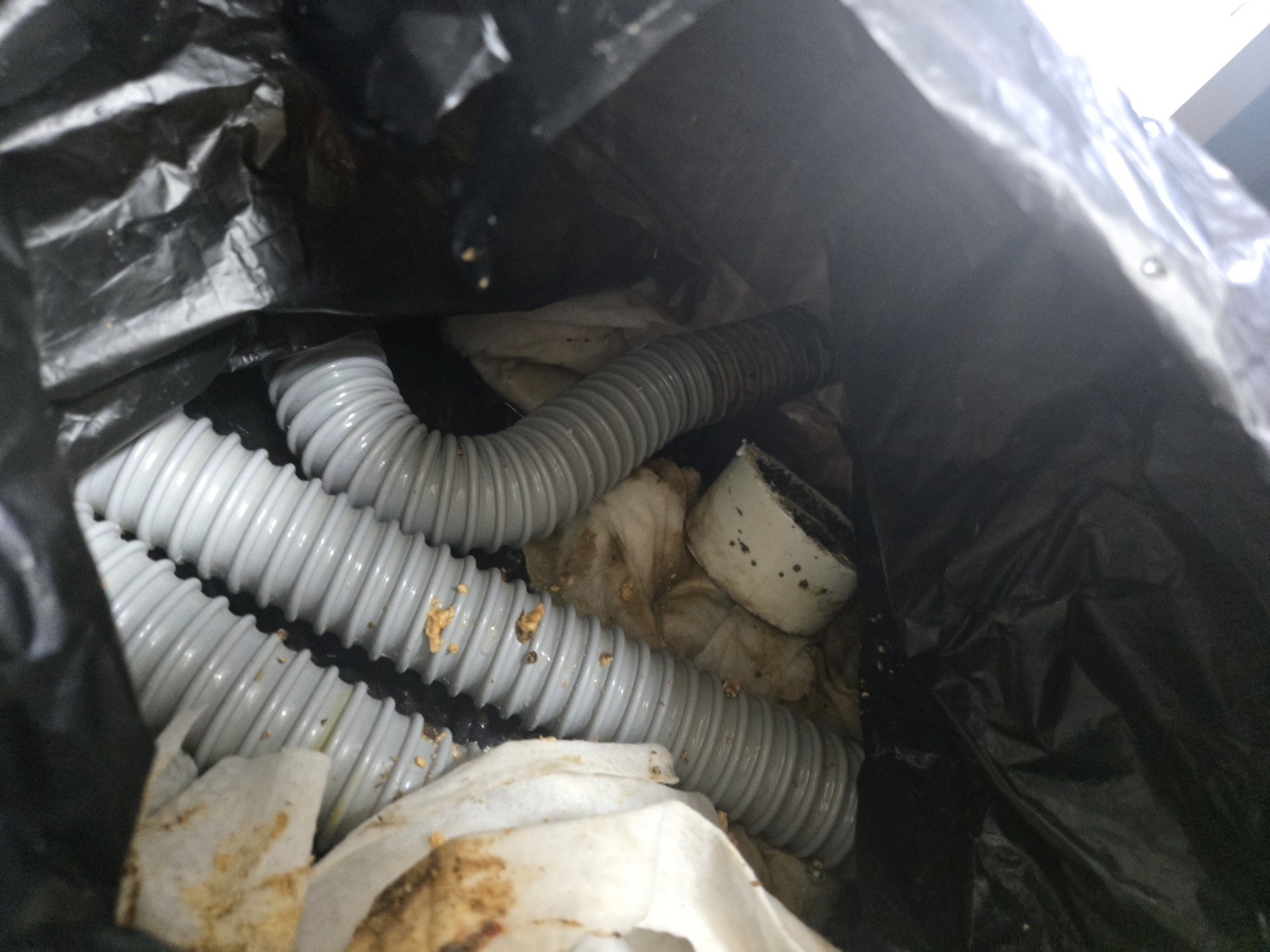 배관 내부를 확인하였더니 기름 슬러지와 각종 음식찌꺼기들이