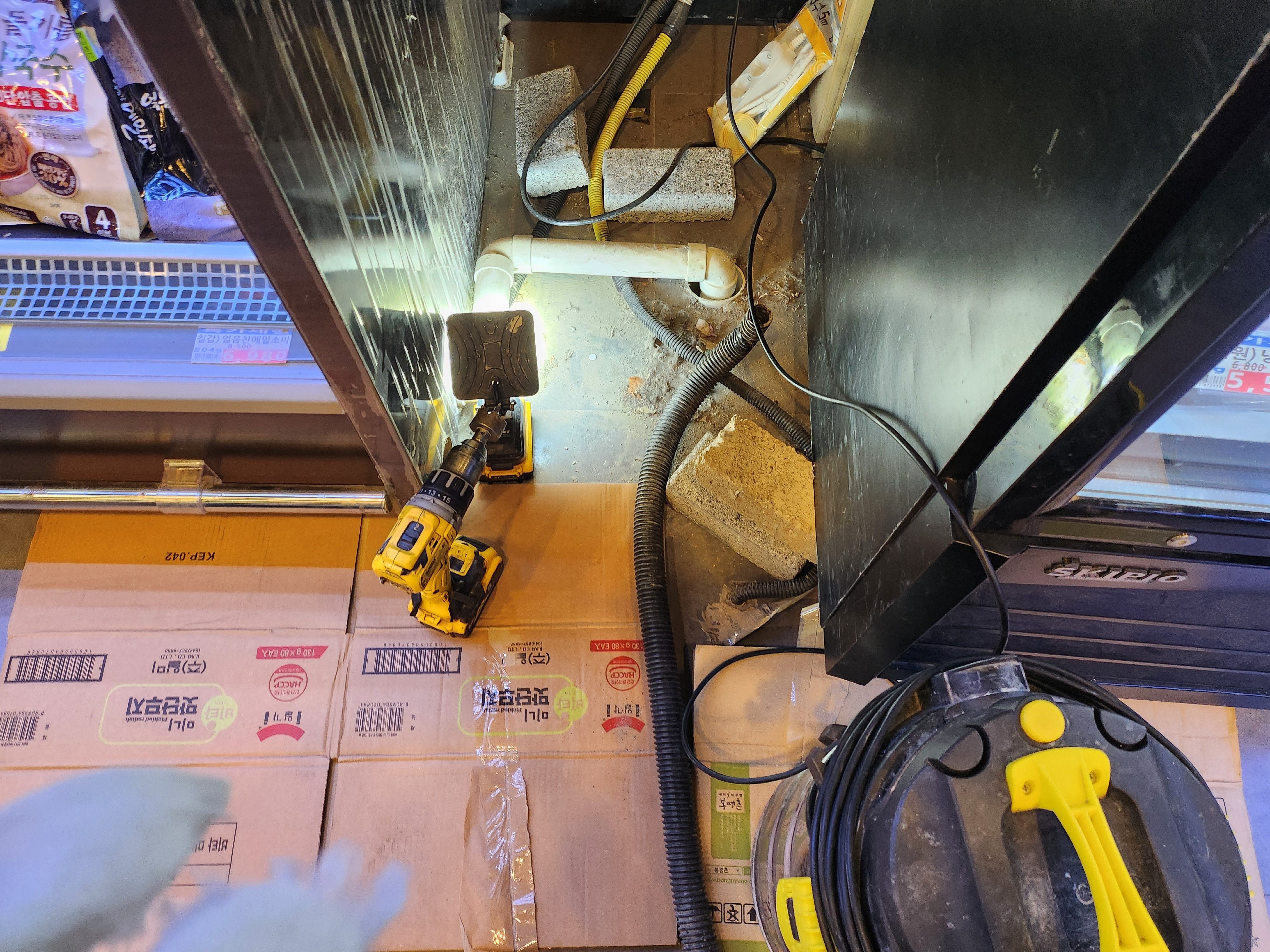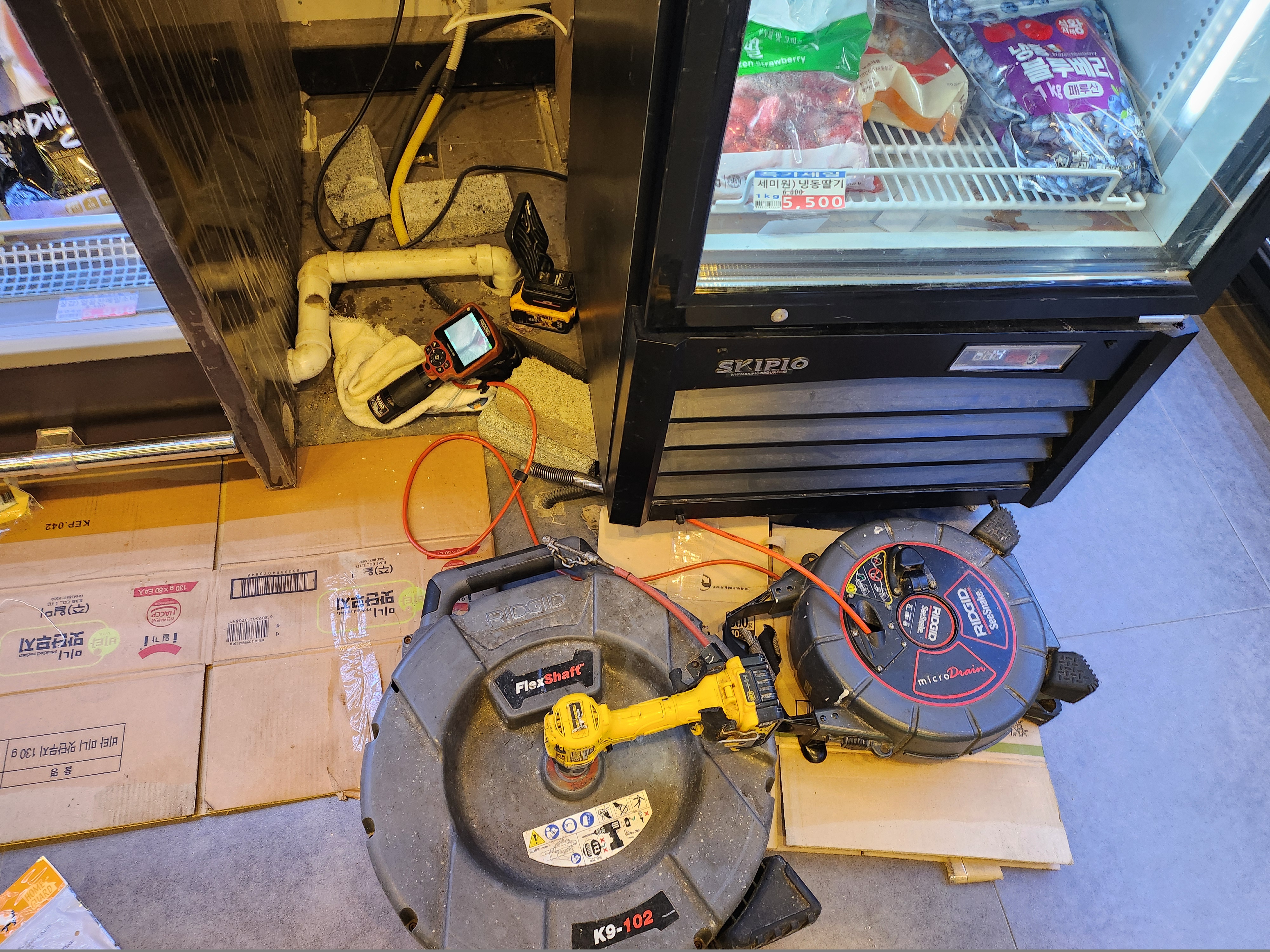 이번 사례는 경기 광주시 탄벌동 마트 쇼케이스 하수관 막힘 사례입니다.