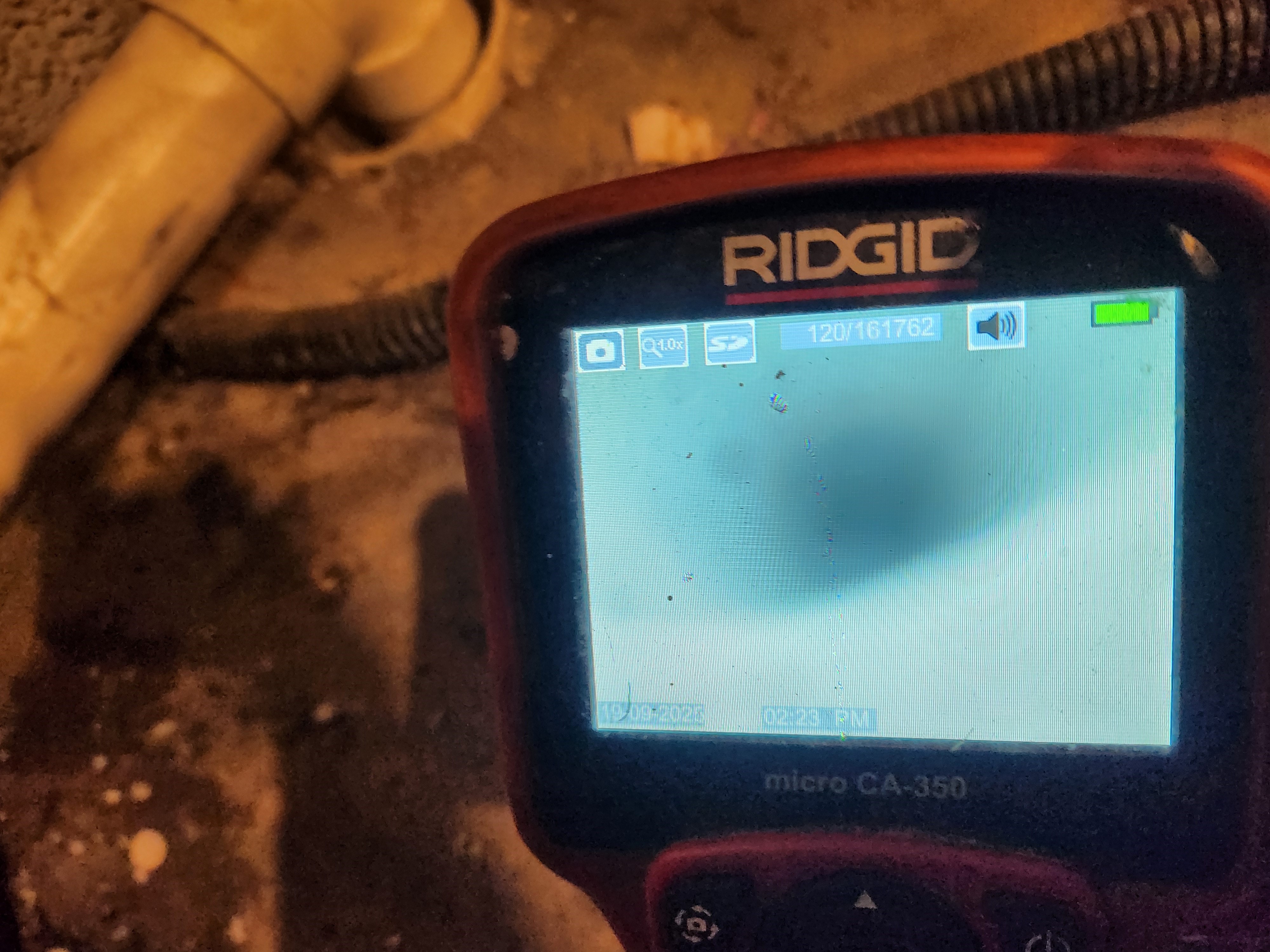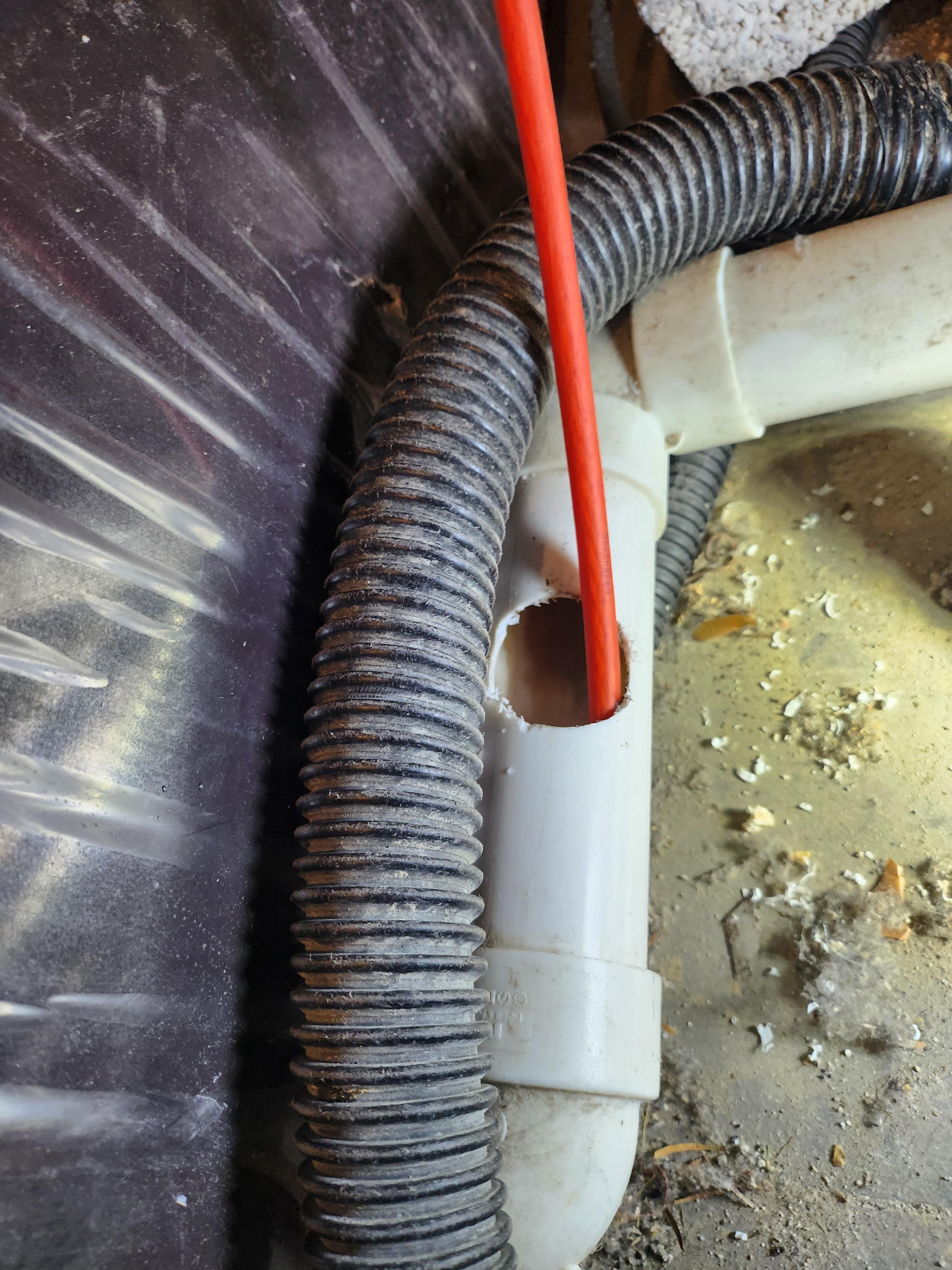 노출 하수 배관에 타공을 한 뒤 석션 작업을 진행하여